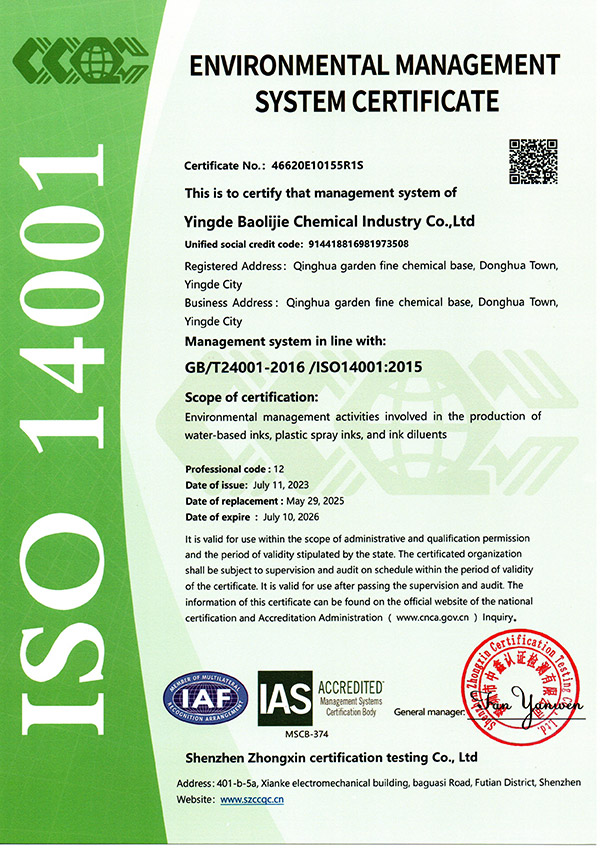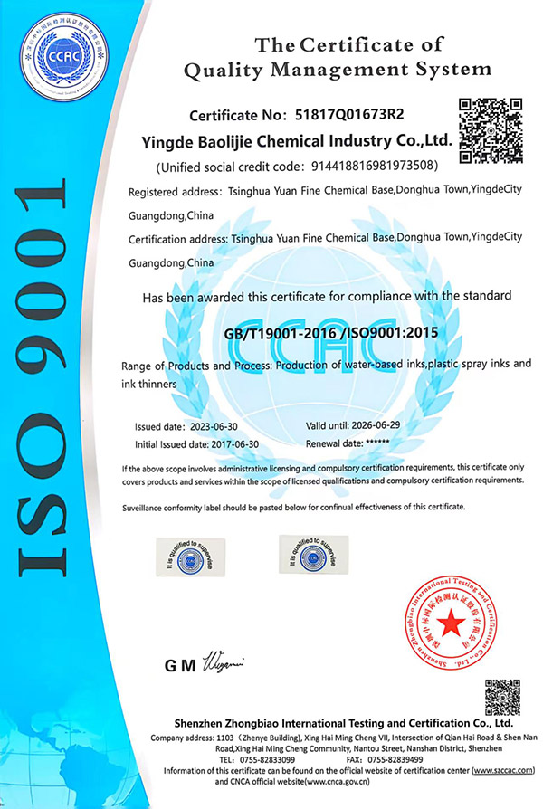 Yingde Bolijie New Materials Technology Co., Ltd. является производителем, который был основан в 2009 году и занимает площадь 15000 квадратных метров. Мы специализируемся на ниокр, производстве и продаже альтернативных расходных материалов для промышленных струйных принтеров. Мы предлагаем CIJ чернила, растворители, чистящие средства, TIJ чернила, DOD чернила, и уф чернила. Наши независимо разработанные чернила широко используются в таких отраслях, как упаковка пищевых продуктов, электронные компоненты, провода и т.д Кабели и строительные трубы.